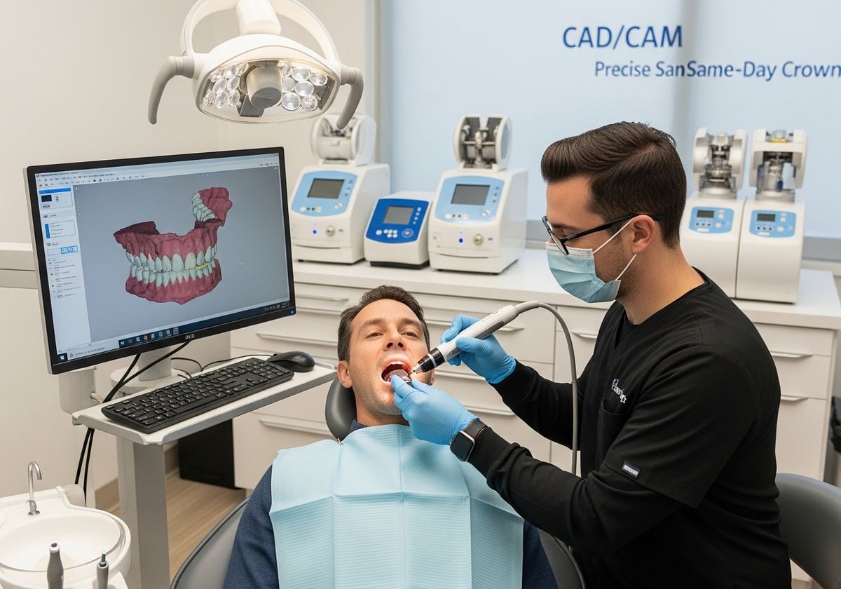 Same-day crowns are created using advanced CAD/CAM (computer-aided design and computer-aided manufacturing) technology. Instead of taking a physical impression of your tooth and sending it to a dental lab, your dentist uses a digital scanner to create a 3D model of your mouth. This model is then used to design and mill a custom crown right in the office, while you wait.